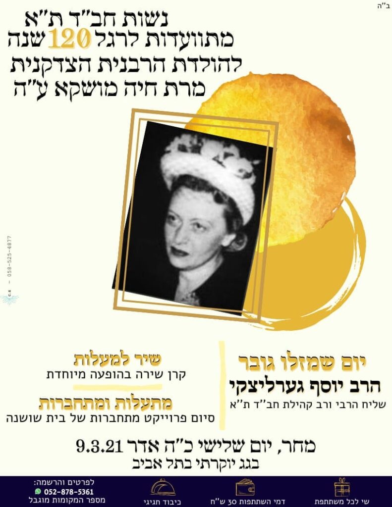 התוועדות לרגל 120 שנה להולדת הרבנית חיה מושקא